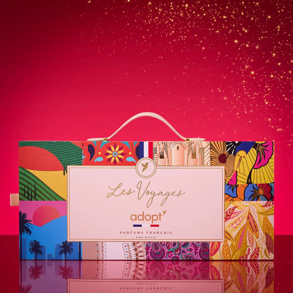Discover eight exquisite French eaux de parfums in our Voyages SET CAPSULE collection. Each 30ml bottle captures a distinct olfactory journey—vibrant, exotic, and utterly captivating. From sensual to invigorating, this curated selection offers something for every mood and preference. Presented in a charming reusable box with a convenient white handle, it's the perfect gift or personal indulgence. Experience the artistry of French perfumery with a collection designed to transport your senses and elevate your daily ritual.